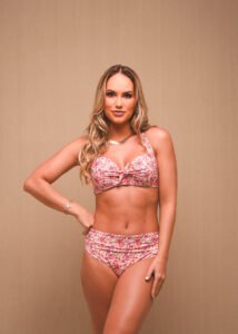 A tanga possui a opção de dobrar o cós, assim podendo usar como modelo hot pants mais alto ou dobrado e mais baixo.