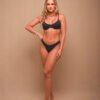 A tanga meio fio asa delta possui o tecido todo duplo, com recorte que modela o bumbum.